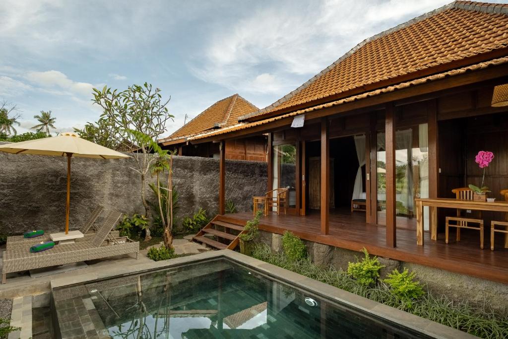 Elegant Accommodation: Aranya Ubud Villa in Ubud offers a 4-star villa experience with an infinity swimming pool, sun terrace, and lush garden. Guests enjoy free WiFi, ensuring connectivity throughout their stay.